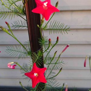 ルコウソウ咲きました🎵 サツマイモ属、アサガオ科 もらって植えたのが、9月だったので、花が咲くか心配でした😅 星⭐の形が可愛い✨