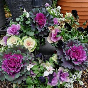 やーっと12月らしい気温になりましたね😃 喜ぶべきか悲しむべきか…😂 暖かかった先月に作った葉牡丹の寄せ植えですが、背景のせいでわかり難い写真になっちゃって…これリースなの😅💦