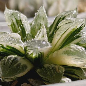 ●ススキノキ科 ツルボラン亜科 ●ハオルチア属 ●新氷砂糖錦😻😻 こちらも先月と変わらない感じですね。😅 今回は光を通した撮影なので、先月より綺麗に撮れました。😁🤭🤭