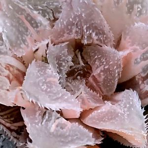 ●ススキノキ科 ツルボラン亜科 ●ハオルチア属 ●新氷砂糖錦 😻😻 おはようございます。🥱🥱🥱🥱 朝から天気が良く太陽光がハオルチアを照らしてくれてたので、撮影会と里子に出す子を選別してました。(笑)🤣 この子は、ほぼ糊斑に近い株ですが、錦の柄が良く見ると入ってます。☝️😅 葉の裏側の葉緑素は入っていても問題ないですが、表は糊斑葉でいて欲しいですね…🤔 しかし、将来は糊斑葉が展開してくれたらと思います。😅 紅葉色に変化してます。😻😍 桃色でヤバいです‼️😋