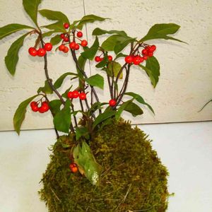 ヤブコウジの苔玉 老婆になれば持ち運びに軽く、どこにでも飾れるのでいいね、😄