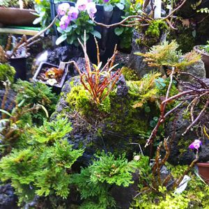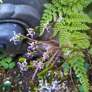 小豆島の岩ひばとセッコク 雨が降りお花達は喜んでいます。 セッコクの花が咲いてなくて淋しい😥 五月頃かな? 可愛い花が咲きます。 ちょっと待ってね。