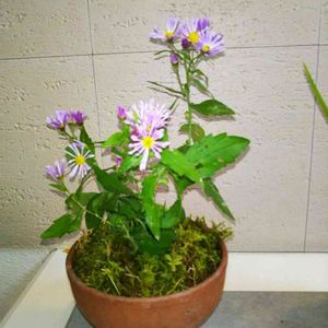 オビト菊と軽石に植えた岩ひぱ。 オビト菊の花びらが普通の、野路菊と違っているでしょう。