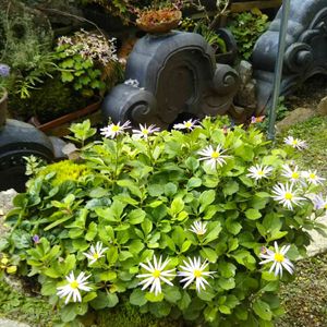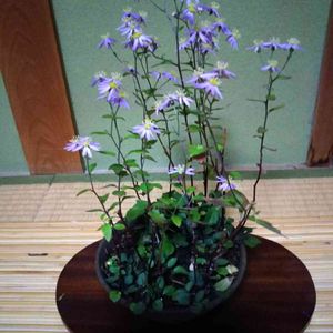 清澄菊 花壇に植えると大きくなり切り花に良いですよ😃 これは鉢にうえて、小さく作りたく三回位切り戻ししました。 成長を止めるのは可哀相だけど、🙇💦💦ごめんね と言っています。