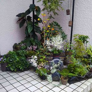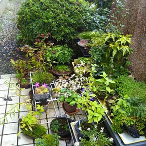 山野草は地味ですが 春になると後部の木、薄黄色の日陰ツツジが咲いて素敵😍ですよ