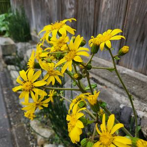お出かけ先 石蕗 ツワブキ 京都の路地にて。 劇混みで3時間で退散しました😅
