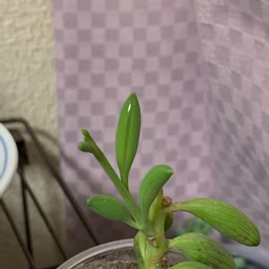 一ヶ月半前に9本出ていた花芽の最後の2本です😊 寒いせいか時間差で咲いてくれるので、とても長く楽しませてくれてます💕 終わり近くなってカットした花芽も、お水に挿した状態でまだいくつか咲いてます😊 で… 花芽なのかお子ちゃまなのかよくわからない新しい子がにょきにょき出てきてます😅 花芽なら良いんですけど😵