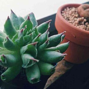 +2.9/+20.1℃☀️ こんにちは😊 去年うちに来た時はこの鉢くらいの大きさがあった百恵さん。 すっかり小さくなったけど最近また成長開始❕ 隣のセンペルさんはダイソーから😄