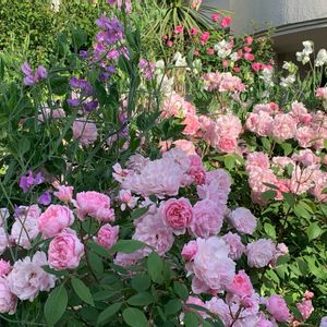 今週の水曜日から市のオープンガーデンに参加していました。 5日間って長くないですか。 きのうまでは午前10時から午後4時まで。最終日のきょうは正午まで。 私はお庭の中まで公開にしていたので、おうちの中からどなたかいらしたかなと思ったら庭に出てお話させていただいてました。 去年初めて参加させていただいてちょっと大変だったので、今年は止めようと思っていたのですが、申し込み締め切り前に市から電話がかかってきてまた参加することに。(^_^;) この辺りは去年は桜が2週間も早く咲き始め、バラの開花も早かったのですが。 今年は桜の咲き始めは1週間も遅く。去年とは3週間も開きがあることに。 去年いらしてくださった方から今年はお花が少ないねというお言葉を。。。 この写真はきょうのモーティマーサックラー越しのアーチですが、サックラーが咲き始めたのは3日目で。やっぱりそれは寂しいよね。 サックラーの手前にドクターハーバートグレイがいるのですが、ドクターさん開き始めたの4日目だし。 この向かい側にポールズヒマラヤンムスク、バレリーナ、夢乙女の小輪組がいるのですがまだ咲いてなかったし。 初日にわざわざ遠くからいらしたバラ好きさんが、ポールズ君見たかったなぁとお帰りになったのが残念で。翌日ひとつだけ咲いたのよ~。最終日にいらしていただいたら良かったなぁ。 お花好きさん、バラ好きさんとお話するのはとても楽しいのですが。20ヶ所周ってスタンプを集めるとお花がいただけるというイベントなので、スタンプさえ押せたらという方が正直半分くらい? また来年も見せてねという方には、来年はしないと思うのよ。個人的に見に来てね~とお返事したのでした。