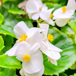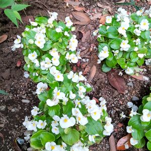 🍀ベゴニアセンパフローレンス🍀 こぼれ種であちこちから出て来て咲いています。 こぼれ種から何代も世代交代してるから 野性味あふれています。