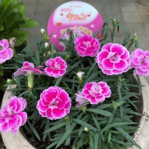 ダイアンサス💗 2023年の母の日売れ残り品😅、ずっと薄ピンク単色だったのに、急に絞りのお花が咲きました♪ この夏の暑さがストレスだったのかなあ♨️ 🏷️木曜日は桃色