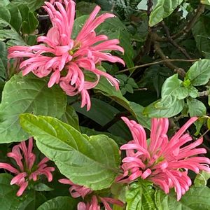 植物公園で、咲いていた『サンゴバナ』ブラジル原産キツネのマゴ科。💗ピンク色が、珊瑚に、見えますね~♬♬💗🌿