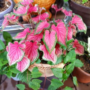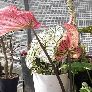 カラジウム・ピンクシンフォニーです! 透け感のある色鮮やかな葉が、光に当たると とても綺麗です✨✨