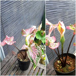 カラジウムのMarie moir😊 強風にあおられながらもだんだん開いてきました😊❤️ やっぱり可愛いっす❤️