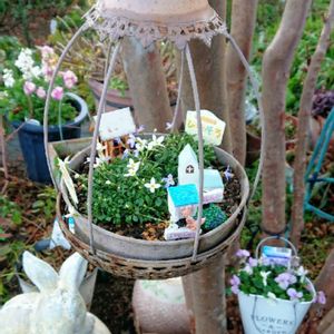この間 いつもの花屋さんにて ヒナソウの白とブルーをお迎え ヒメシャラの木に吊り下げて…💖 鳥カゴに植えてモリモリになる事を願ってます(*˙︶˙*)ノ"💕 鳥カゴから白とブルーの小花が垂れ下がる姿をイメージして… 大きくなって行くのを見守ります(ㅅ´ ˘ `)♡