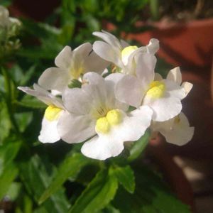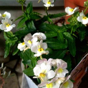 今日の2枚目 花屋さんを何軒も探し回って見つけた、ネメシアのレモンパイ🌸 切り戻しをしてから、また元気に咲いてくれてます🥰