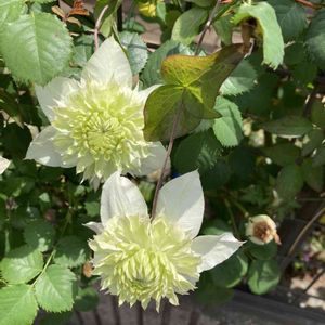 クレマチス シロマンエ 開花しました。 思っていたより小さいけど、今年植えたばかりの苗なので、こんなに咲いてくれるだけでも、嬉しいです。