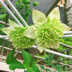 クレマチスの白万重です。 もうすぐ咲きそう💕 育て初めてまだ2ヶ月ほどです。