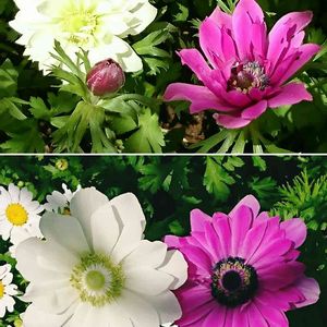 こんにちは👋😃☀ 5/01に蕾をpicしたアネモネサンが咲きました😆⤴💓 同じ白とピンクでも⬆と⬇は花びらの形が違いました🙇 👩「白とピンクが寄り添っていて可愛いわ〜😄😍」