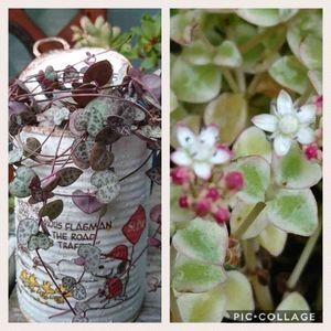 おはようございます☔ 毎日☔ばっかりで嫌になります😣多肉ちゃんたち大丈夫かな~😁 ハートカズラ💕お花が咲きました🎵
