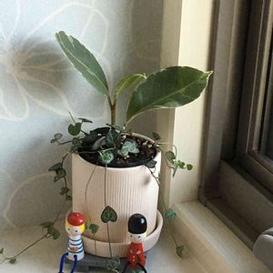 この前家に来た ハートカズラ❤ ぐんぐん成長中です😆 今年の夏でどれくらい伸びるかな🎵 ピンクの鉢もかわゆい💓 と、思っているのは私だけ❔😅