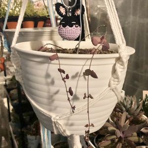 🏷ネックレスの日 極寒でやられちゃったハートカズラさん💓 3鉢まで増やしてたのに、この鉢だけになっちゃいました😭 少しづつ復活してやっと2本になりました💕 aoちゃんのプラハンでぶ~らぶら)) お迎えばかりの可愛い編みぐるみのピックと📷✨