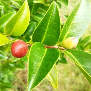 我が家のサザンカさんの今🎵💞 実とツボミが一緒に⁉️ これもG.S.に投稿したくて☺️! 観察しているおかげさまです😌💓。