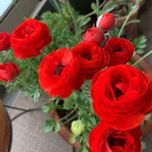 おはようございます(´∀`*) 真っ赤なラナンキュラス❣️ カットして部屋に飾ろうか そのまま楽しもうか 毎日 悩んでます💦 あ〜〜〜どうしよう(´ε` )