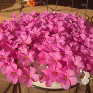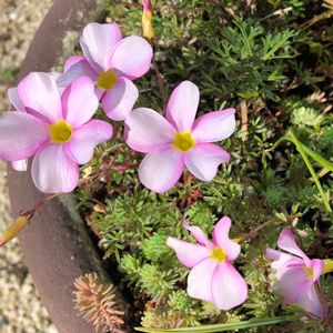 明日はお天気悪いので 晴れ☀た時可愛く咲いてくれる 🌸オキザリス🌸 ♡桃の輝き ♡ラブハピネス 鉢いっぱいモリモリ 蕾のくるくるも可愛いですよ💗💗 まだまだ 楽しめそうで〜す🌸✨✨