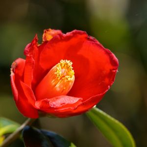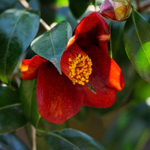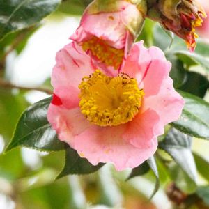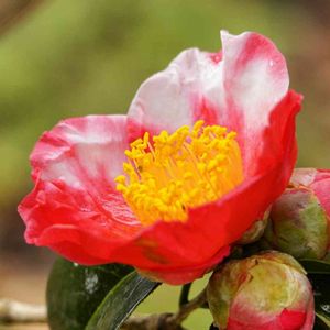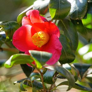 ツバキ科 ツバキ品種 紅一重金魚葉椿