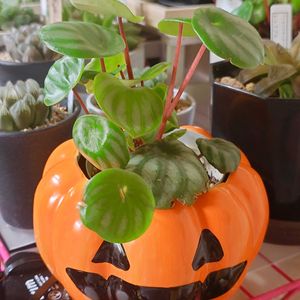 スイカペペ🍉 ハロウィンの陶器鉢! これ、ダイソーさんで発売されてる鉢。 可愛くて欲しかったけど 見かけたことなくて、友人がみつけて買ってきてくれた😭 お揃い♥ 私はスリット鉢のスイカペペをいれてみたら スッポリ! スイカ、かぼちゃ! 西瓜、南瓜(笑) ハロウィン終わってもこのままにしておこうかな。 可愛い💕 カボチャもスイカペペも大好き!