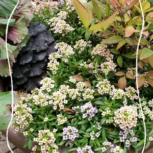 お正月用に植えたアリッサムと葉牡丹✨ アリッサムは元気に咲きだしました~✨ 季節を知ってますね~🎵 葉牡丹は沢山の花が咲き倒れそうだったので✂️しましたが、又小さな蕾が付いています🎵