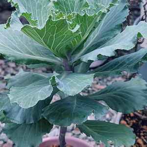 葉牡丹寄せ植え 雨にあたってツヤツヤです🎵 ブリリアントブラック 黒い葉牡丹~バラ咲き~ φ(..)10号鉢