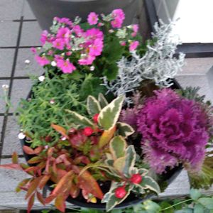 ホームセンターの寄植えを参考に、お正月用の寄植えに挑戦してみました。