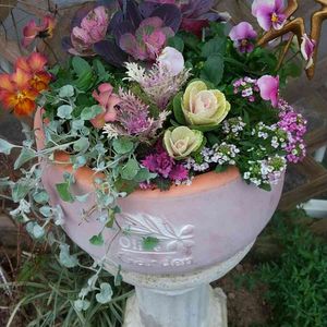 大きな穴の空いた葉牡丹で寄せ植えしました~😊なかなか、理想の寄せ植えにはならない💦