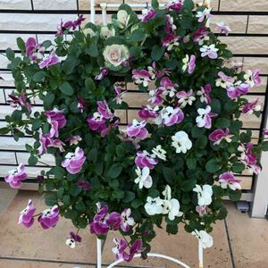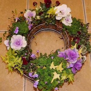 11月に植え込んだビオラ(おかめももか)とミニ葉ボタンのリースが花いっぱいになりました いつもは何色かのビオラを選ぶのですが、センスの無さが際立つので、今年は1品種にしましたが、色の幅があるのか意図せず、良い感じになったかな? 苗代532円で完成です😀🌱🌱