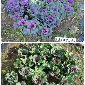 下は先月投稿分。 上は最近の写真です。 寒くなり色が変わり、競い合って大きくなってます。 ハボタン