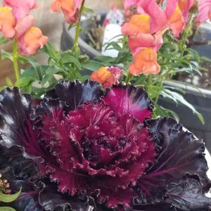 葉牡丹(光り輝く) 光子ロイヤルとオレンジ色の金魚草♪