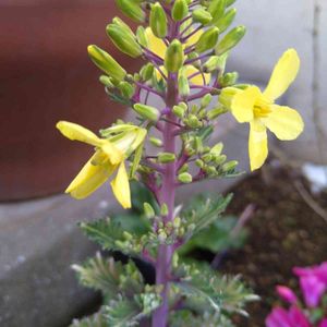 お正月の寄せ植えの葉牡丹 こんなに伸びて開花です😆