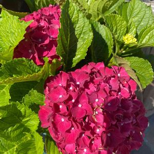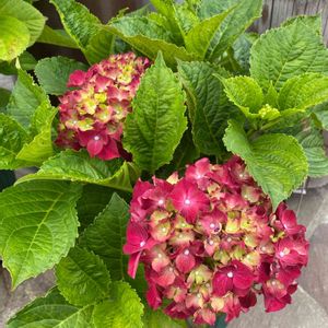 紫陽花、ホットレッドちゃんです。 去年秋のホームセンターの見切り品で今年初めてお花を見ました✨ 紫陽花で赤色はなかなか見ないので斬新な感じです。紫陽花にしては矮性?らしく鉢植えにも向くそうです☺️