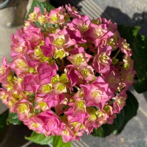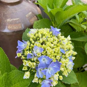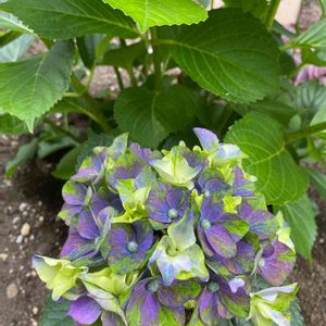 紫陽花カメレオン 実はこの花、出戻りです。 某スーパーの母の日カタログで母に紫陽花を贈ったのですが、母が好きな紺色の(名前忘れた)紫陽花を贈ったのに生産者が品種を間違えたみたいでカメレオンを母宅に発送。母がいらないとのことで、出戻り?して来ましたー😄 けど 咲き始めのグラデーションカラーが美しいのです☺️うっとり。出戻りでむしろ良いわ。ちょっとショックだったけどね。