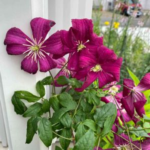 クレマチス マダムジュリアコレボン 申し訳ないことにきちんと支柱しなかったせいでお互いの首をしめあっている状態に、、。 やっと白色ワイヤーが届いたので遅いけど、雨樋に巻き巻きしてみます😄