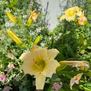 ヘメロカリスも蕾たくさん、花たくさん咲きそう! 植えてから3年目?に初めて咲いて去年は花はひとつだけでした。花が咲いてから2年目の今年は良い感じになってます☺️