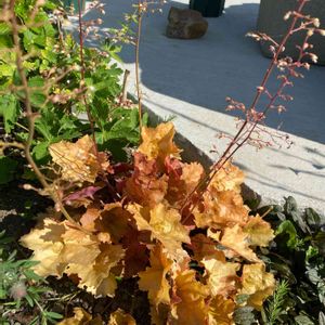 ヒューケラちゃん。 こちらのキャラメルカラーはお気に入りです☺️ たくさんヒューケラ購入したのに、黄金虫の被害で5つくらい死滅してしまいました。 ショックでした。 今年からオルトランです。