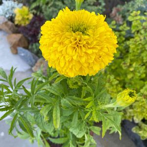 黄色の花好きな次男のために買ったアフリカンマリーゴールド。 おっきい!! マリーゴールドってよく小学校や歩道花壇に植えられてるけど種類あったのですね😄