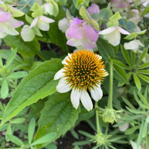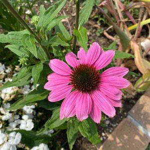 矮性?のエキナセア。もう3年以上たつのですが、株広がらず、大きくならずです。場所が悪いのかな、、?