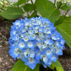 一番咲きの紫陽花 霧島の恵。 水色が綺麗。成長がはやいなぁ😲