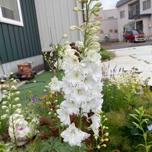 白のデルフィニウムもとっても素敵。 白はどこに植えても違和感ないですなぁ✨