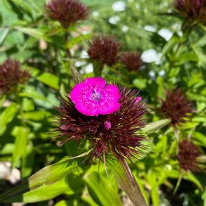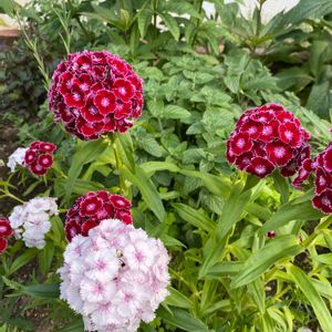 咲きました。撫子ちゃん〜。 丸くてかわいい✨ ピンク系のいろんな色があるんですねぇ。
