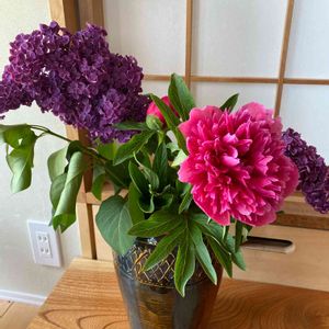 ご近所さんからいただいた芍薬とライラックです✨ 迫力があります! ライラックの香りも良い感じ😄
